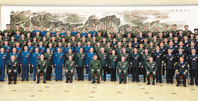 會(huì)前,習(xí)近平親切接見(jiàn)出席十四屆全國(guó)人大一次會(huì)議解放軍和武警部隊(duì)代表團(tuán)全體代表,并同大家合影留念。